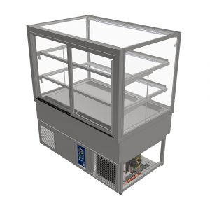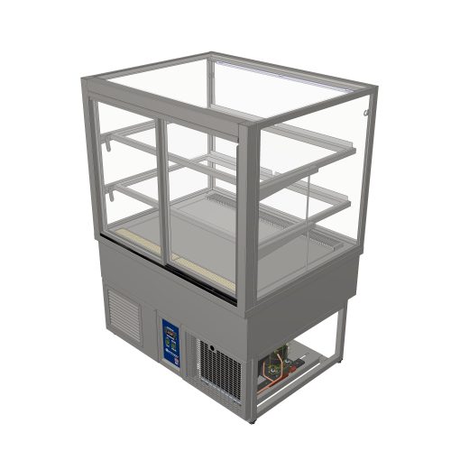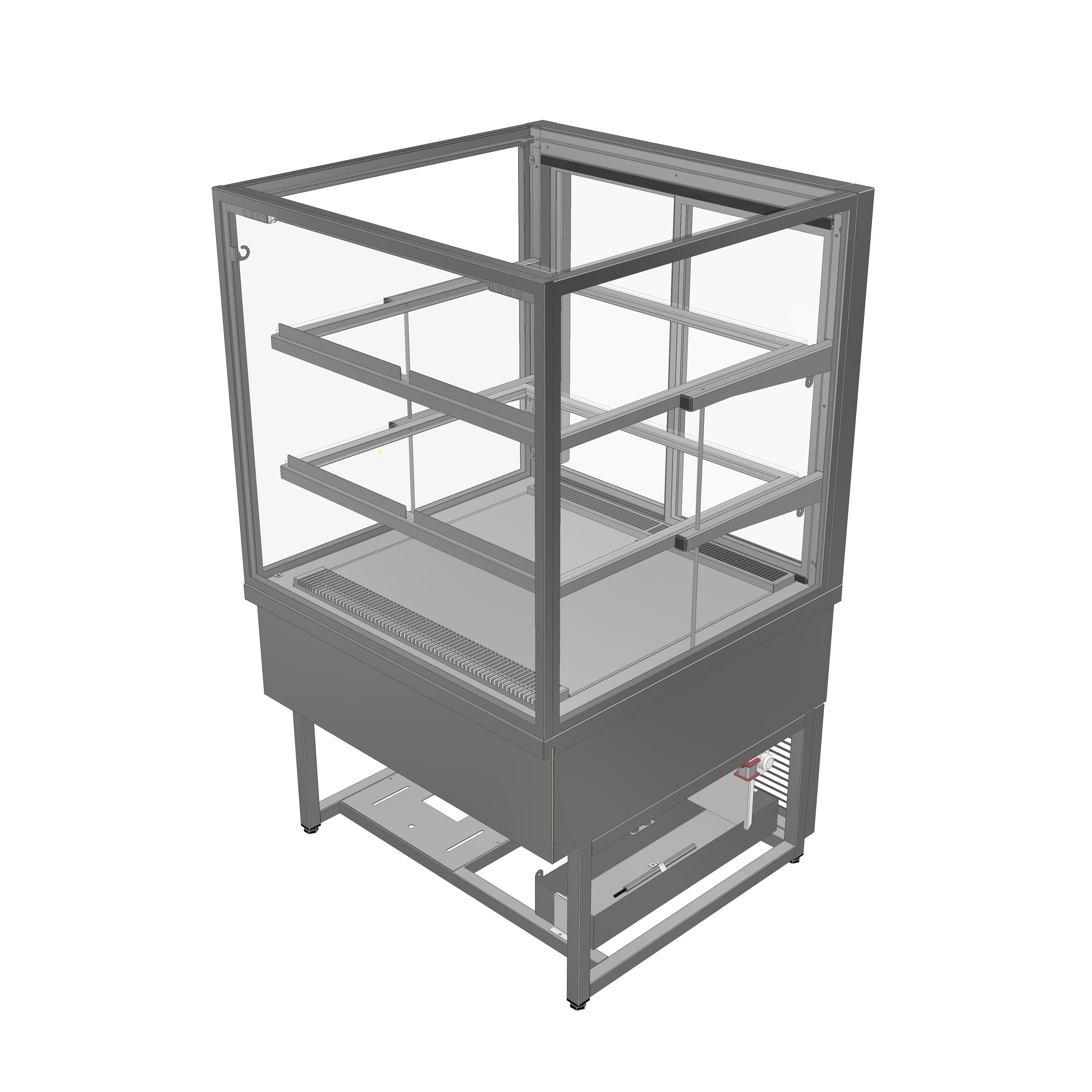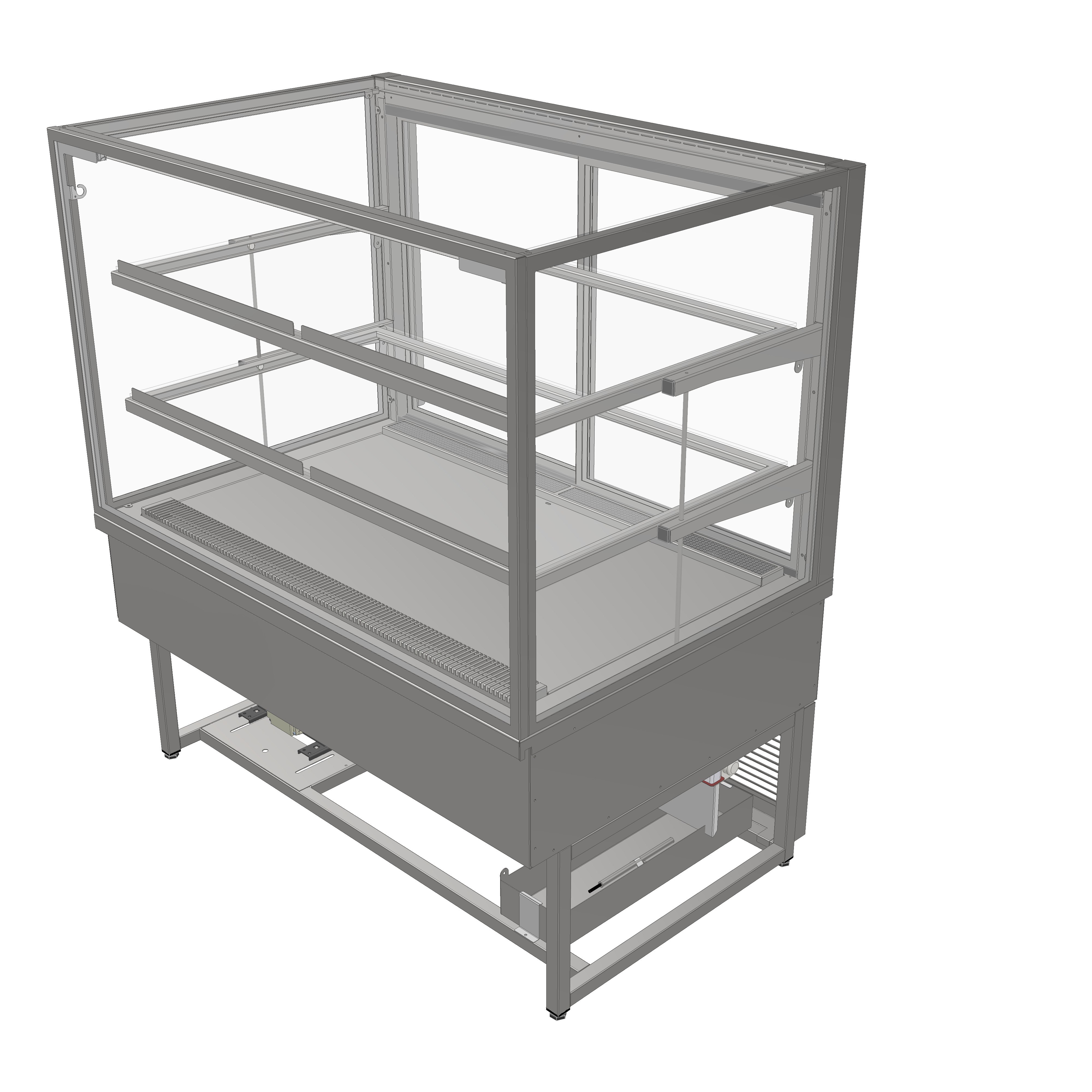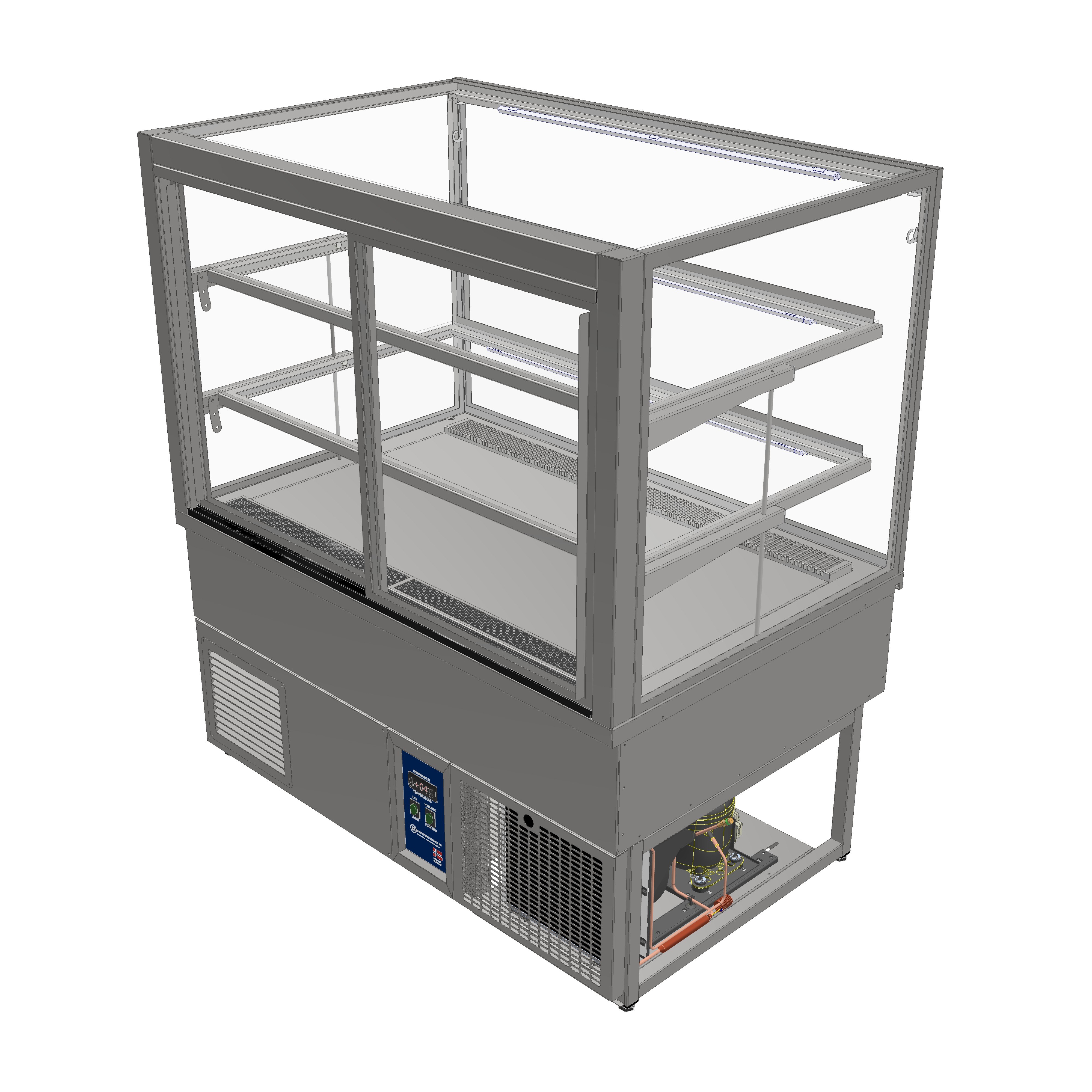 Utlufting fra kjølemaskin på betjeningsside, trenger ikke ventilasjonsrist i frontkledning.
