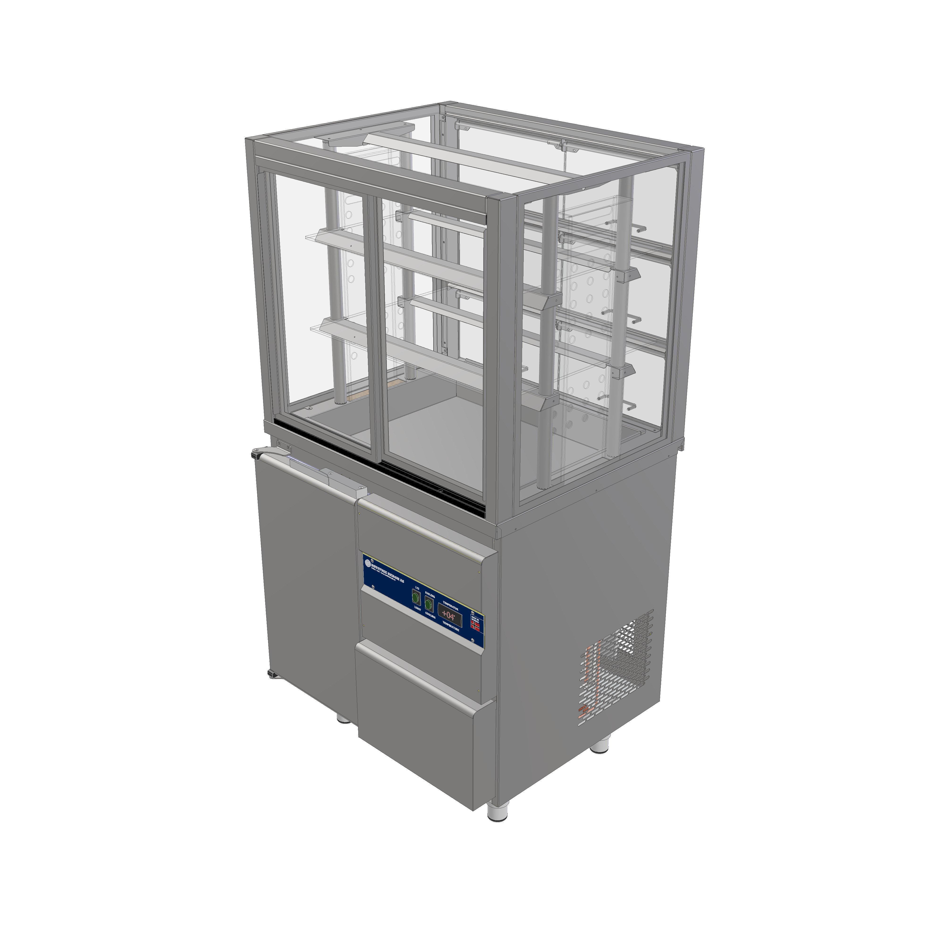 L 420, B 632, H 690 mmMed skyvedører og belysning, åpen front uten luker